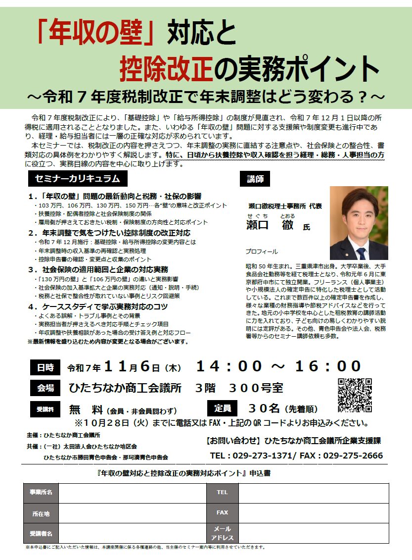 2025年11月6日にひたちなか商工会議所(JR常磐線 勝田駅)にてセミナーを行います。