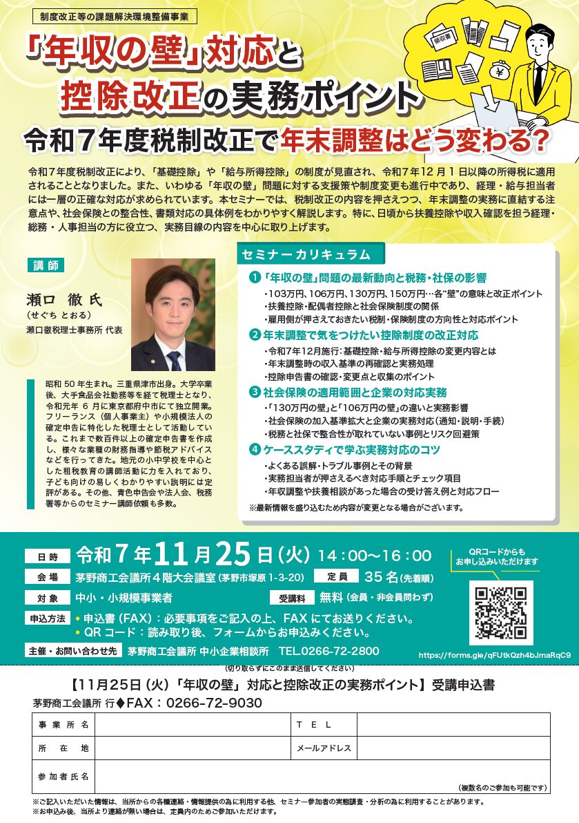 2025年11月25日に茅野商工会議所(JR中央本線 茅野駅)にてセミナーを行います。