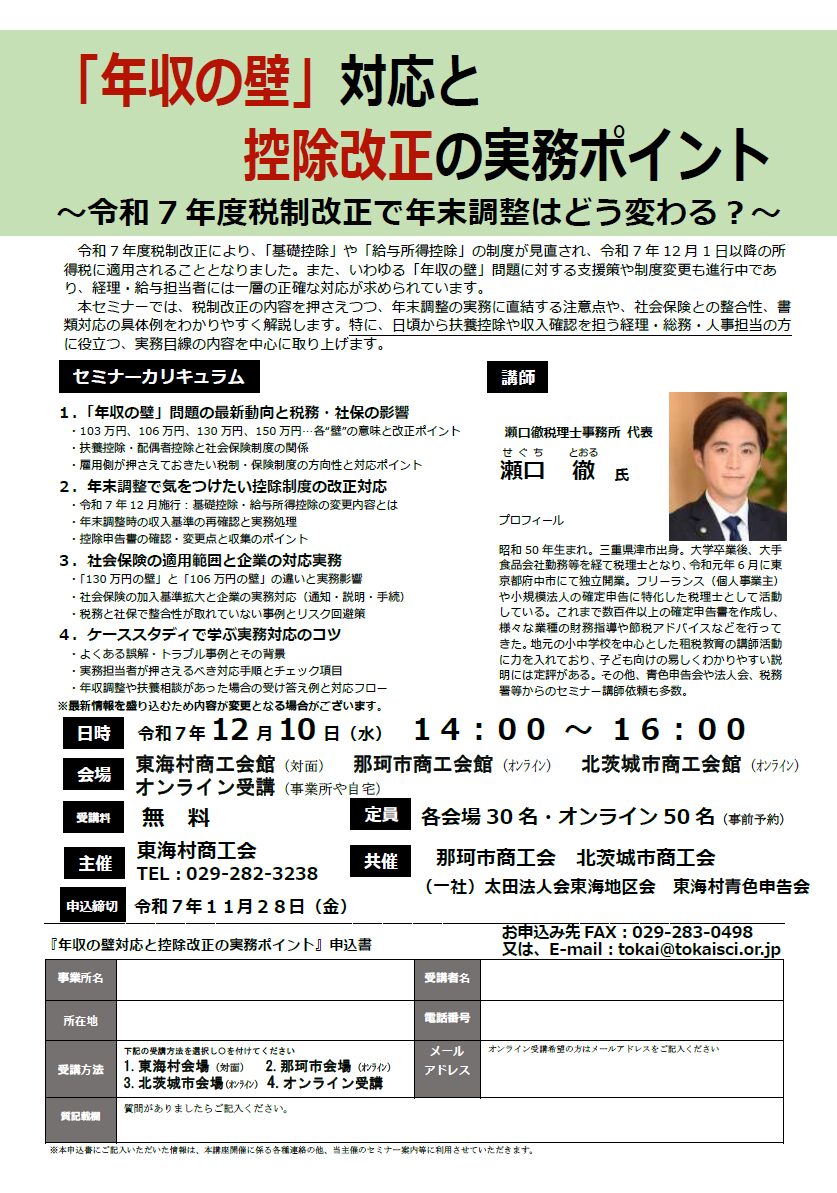 2025年12月10日に東海村商工会(JR常磐線 東海駅)にてセミナーを行います。